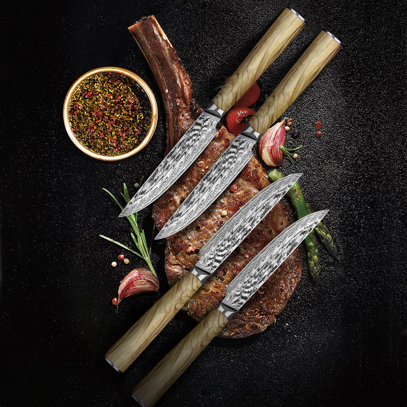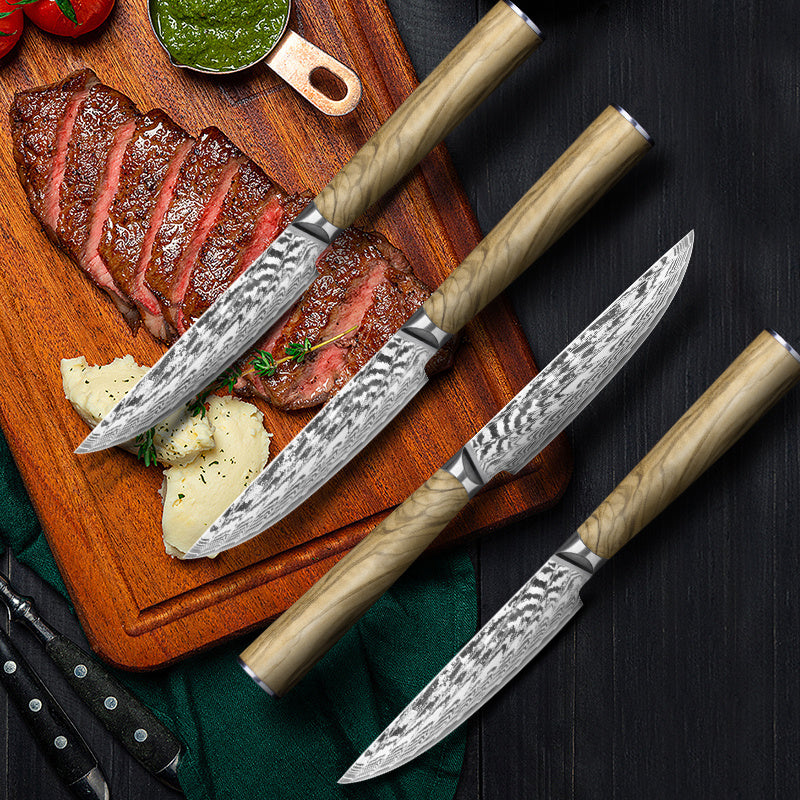 Damascus Steel Cured Wooden Handle Kitchen Knife Steak Knife